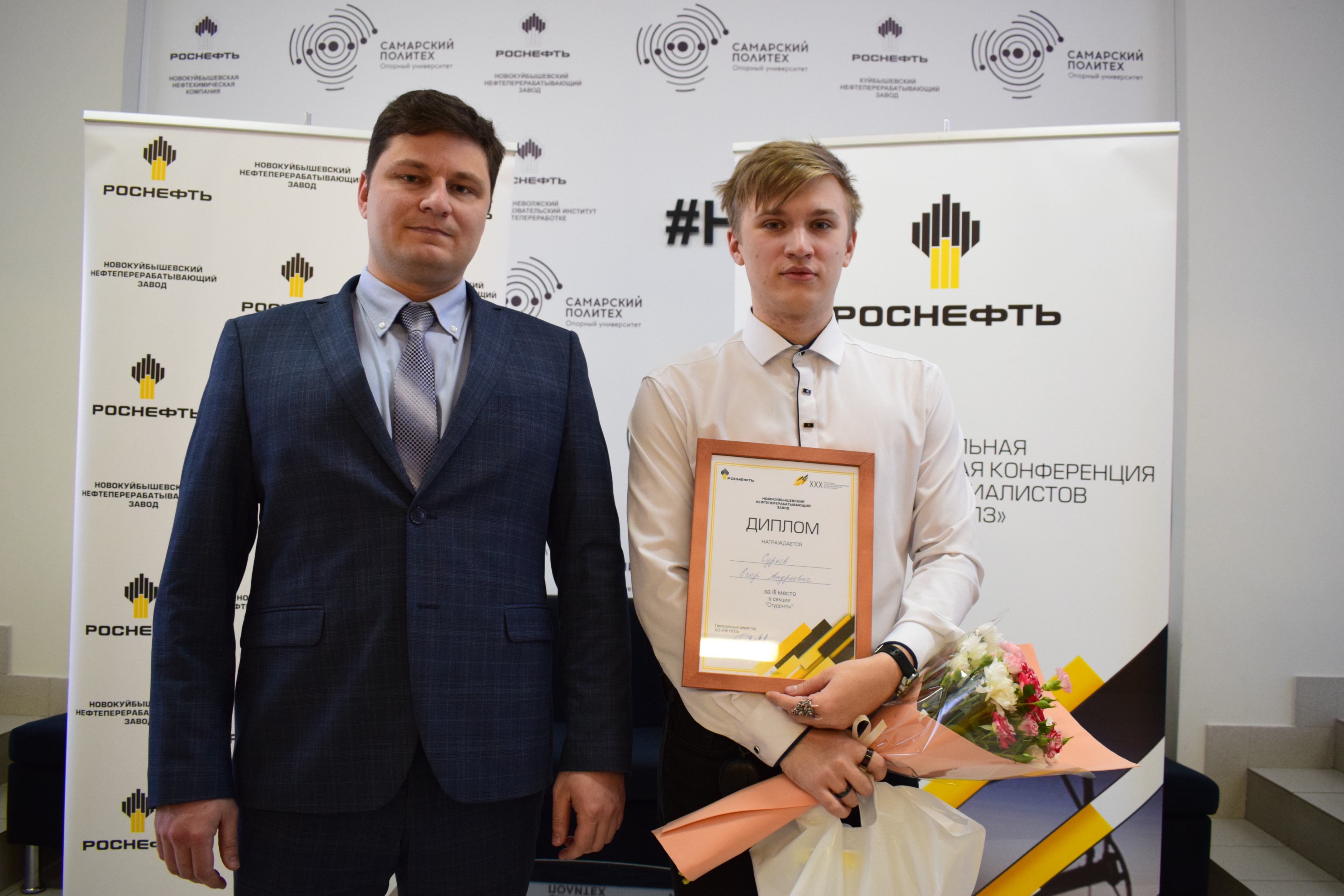 Ведущий специалист отдела моделирования производственных процессов Артём Курашов завоевал две награды. Второкурсник магистратуры победил в секции «Промышленная энергетика» с проектом по утилизации тепла дымовых газов и занял второе место в секции «Экономика и финансы» с проектом повышения маржинальности нефтепереработки за счёт выпуска высокооктанового бензина АИ-100.